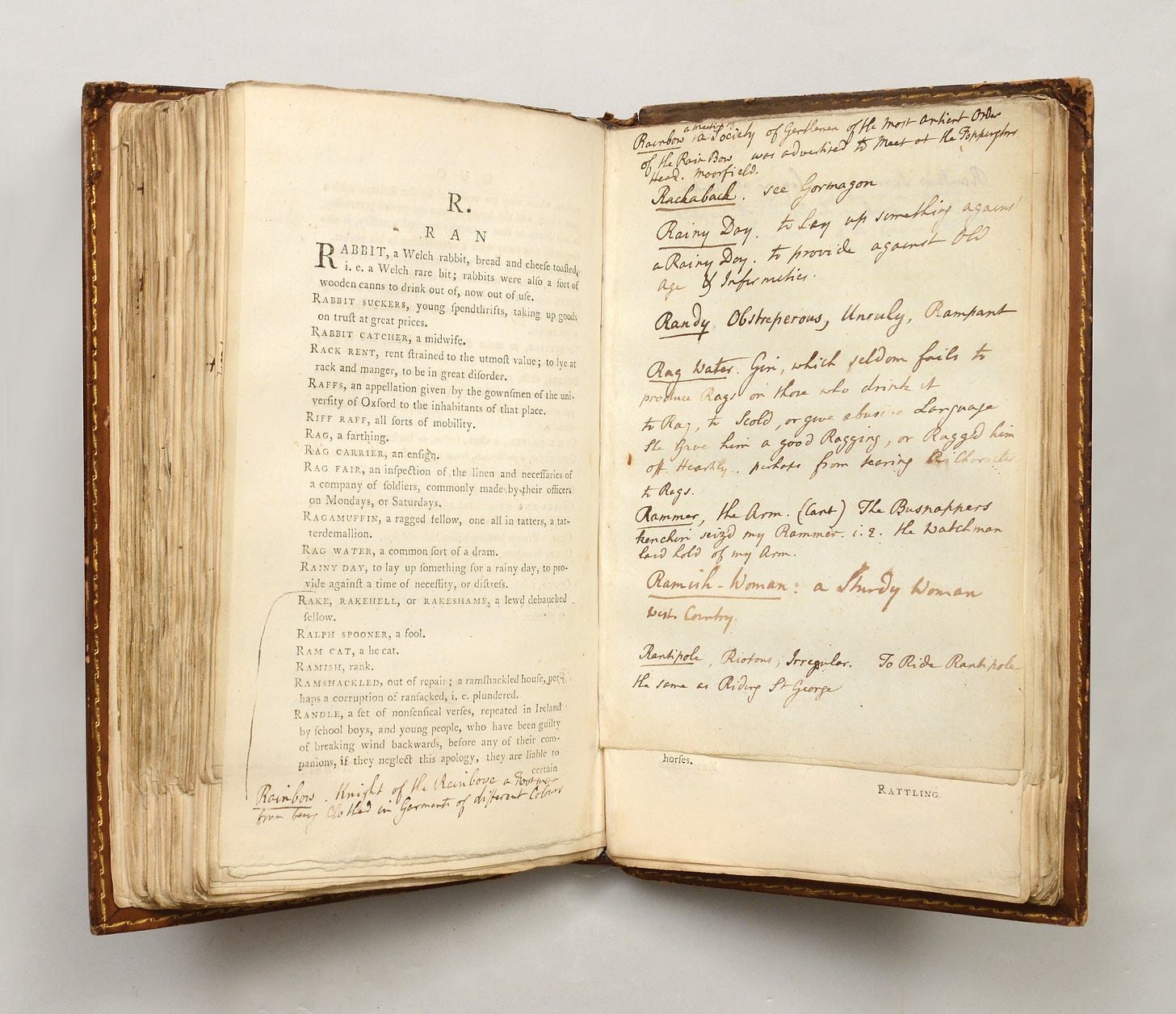 Nor, this being 2023, was it the corporeal Captain. He left us, too early by far, in 1791. But the Captain in libro, in the pages of the first edition of his Classical Dictionary of the Vulgar Tongue. This, a dictionary of slang (‘better left unpublished’ sneered one snob obituarist), appeared in 1785, and there would be revisions in 1788 and 1796 but the one I carried is unique. It offers dozens of interleaved pages, handwritten by Grose himself, laying out the bases of the entries that would be added to or would revise those existing and appear in the second edition. Or nearly all. Some seem to have slipped between his or his printer’s fingers, some e.g. arse-man, seem to have been deemed a little too vulgar and failed the cut; this particular term would not reappear until 1941. (I have written of them here: https://jonathongreen.substack.com/p/the-too-vulgar-tongue and of the Captain himself here: https://jonathongreen.substack.com/p/fit-for-purpose).